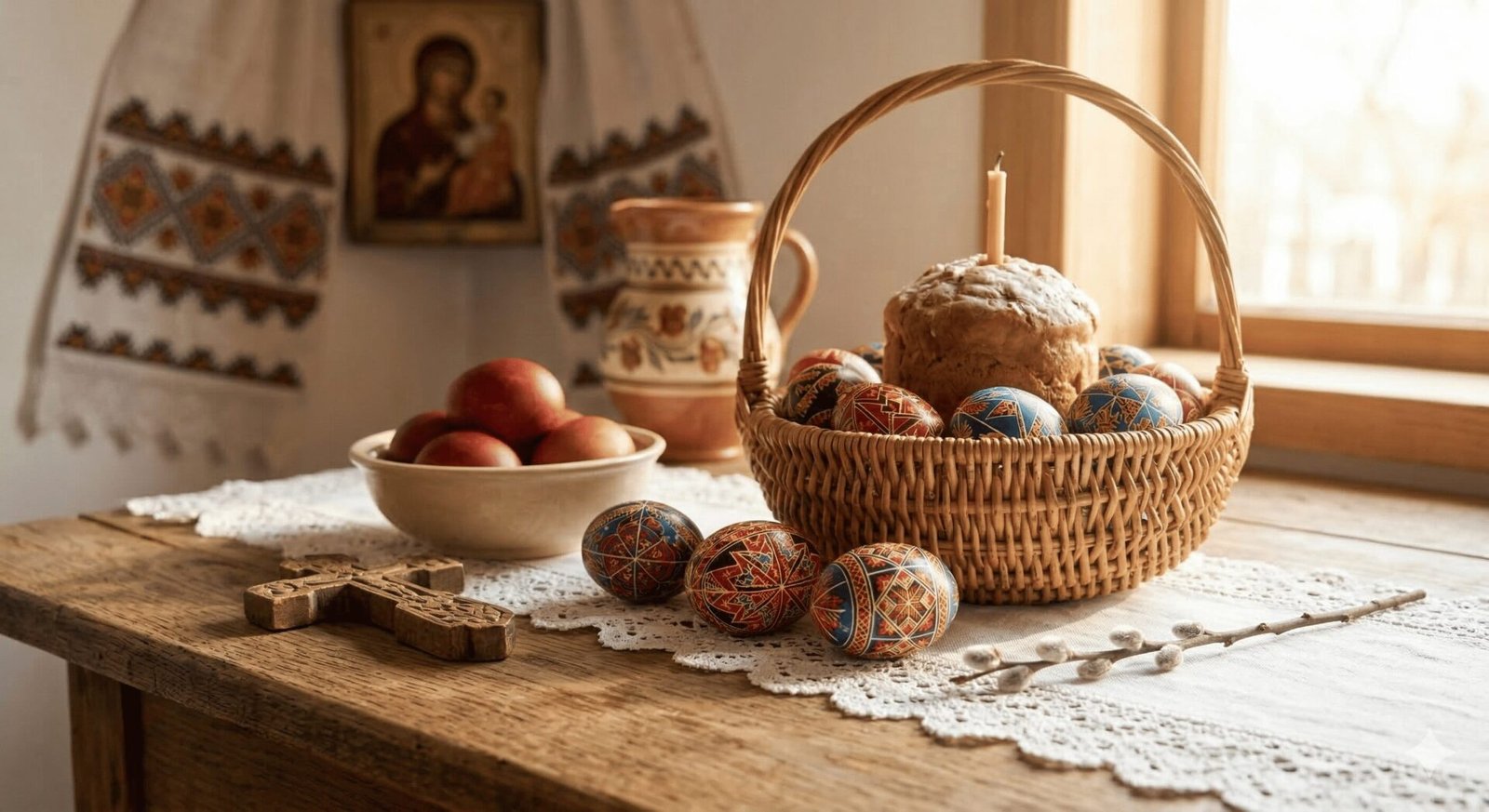 Освящение корзины: Традиционно в церковь несут куличи, яйца (писанки и крашанки), соль и мясные продукты. Помните, что освященные продукты нельзя выбрасывать в мусор. Если что-то испортилось, лучше сжечь это или закопать в месте, где не ходят люди (например, под деревом).